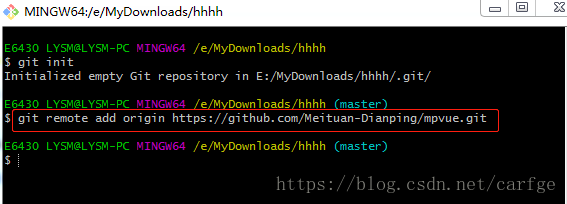 3、自己要与origin master建立连接(下划线为远程仓库链接)
