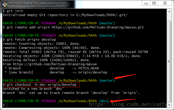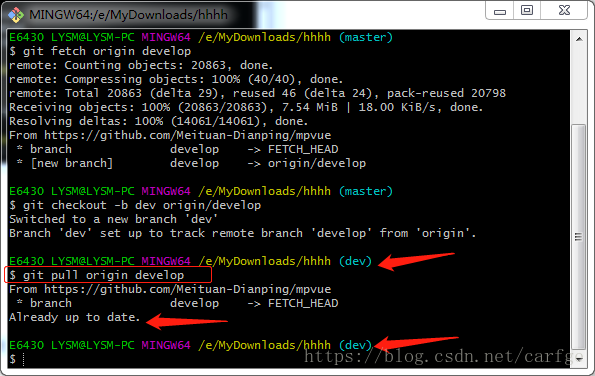 下面拉取远程的develop分支,命令: