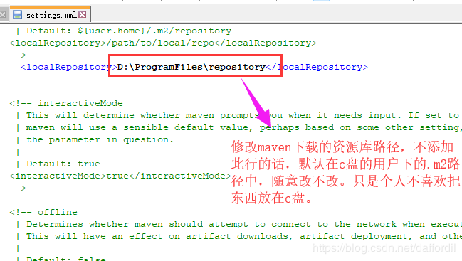 <localRepository>你要放置资源库的地址</localRepository>