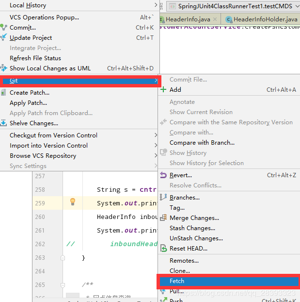 3 修改成功以后,点击VCS-Git-fetch,刷新远程修改到本地,此时点击右下角git分支树,就是最新的分支树了