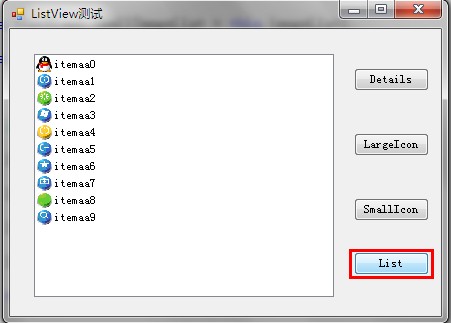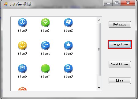 1、LargeIcon:每个项都显示为一个最大化图标,在它的下面有一个标签。(效果见下图)
