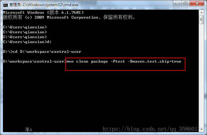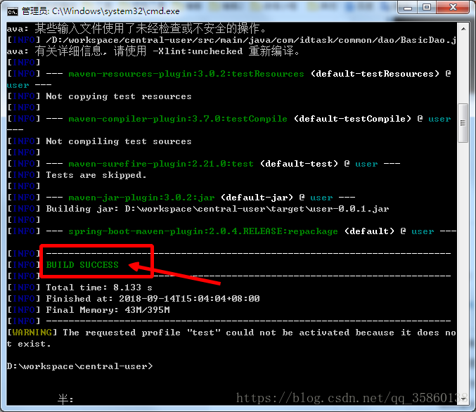 【2】运行maven的打包命令,mvn clean package -Ptest -Dmaven.test.skip=true