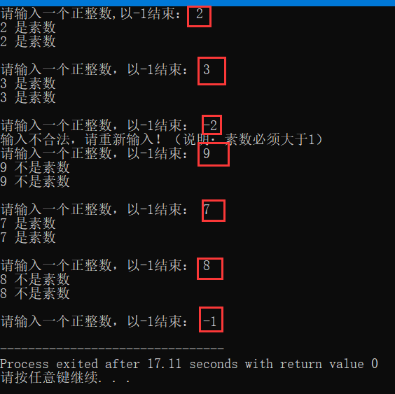 printf("请输入一个正整数,以-1结束: ");