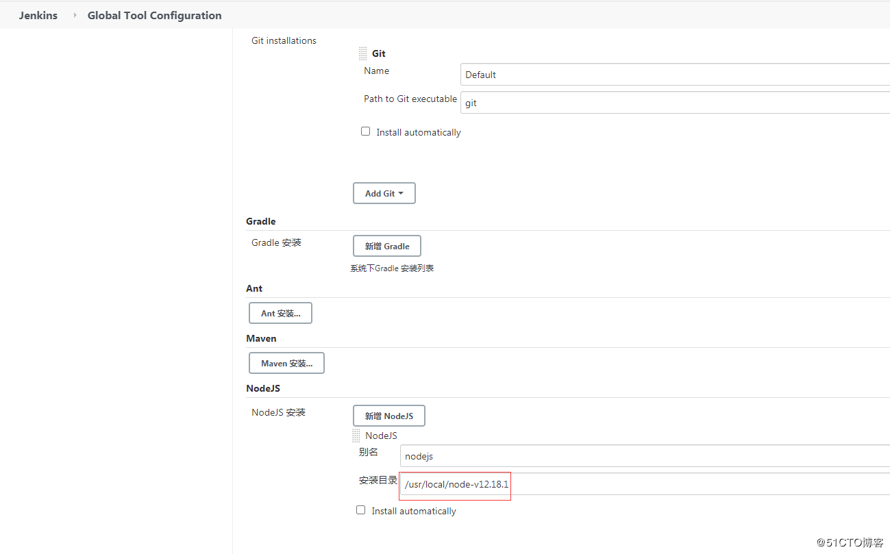 3、在jenkins全局工具配置配置nodejs安装目录