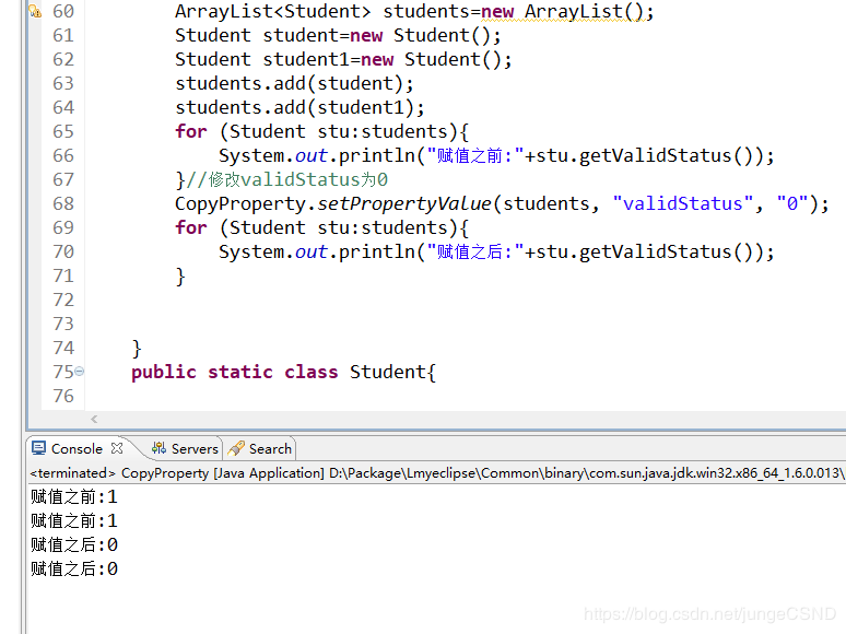 CopyProperty.setPropertyValue(students, "validStatus", "0");