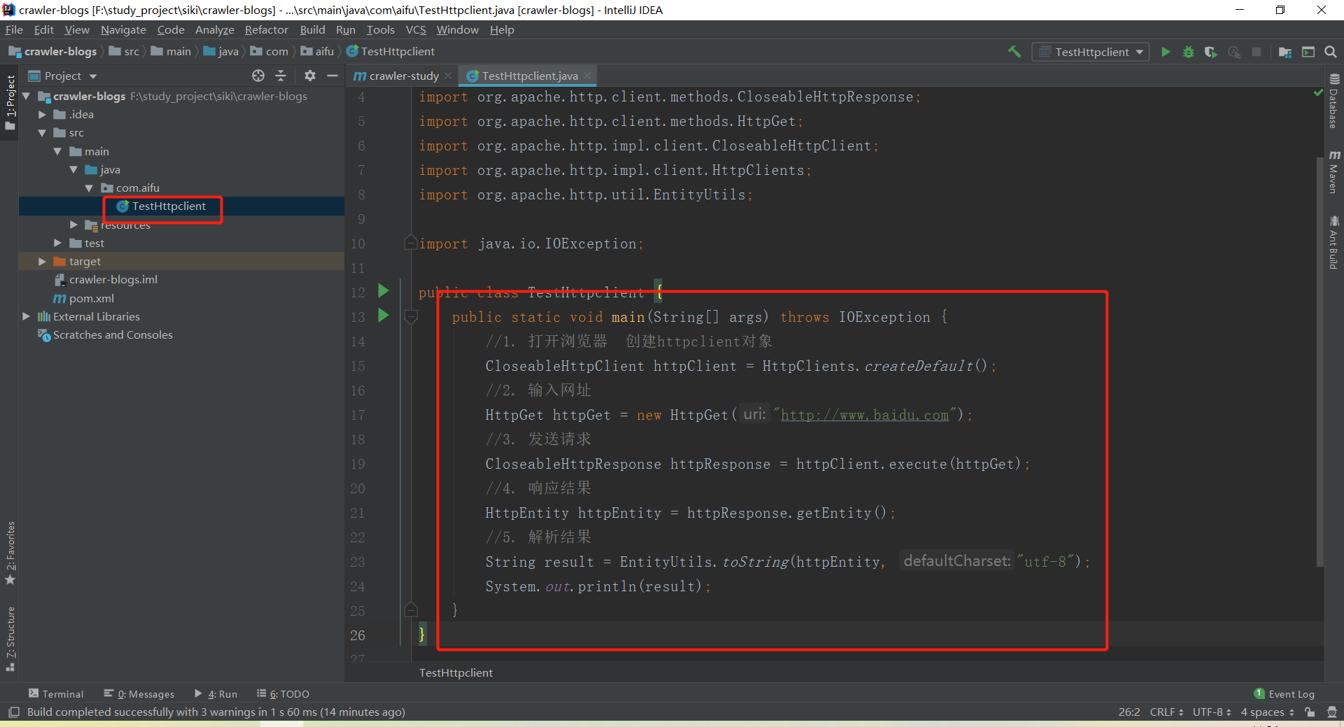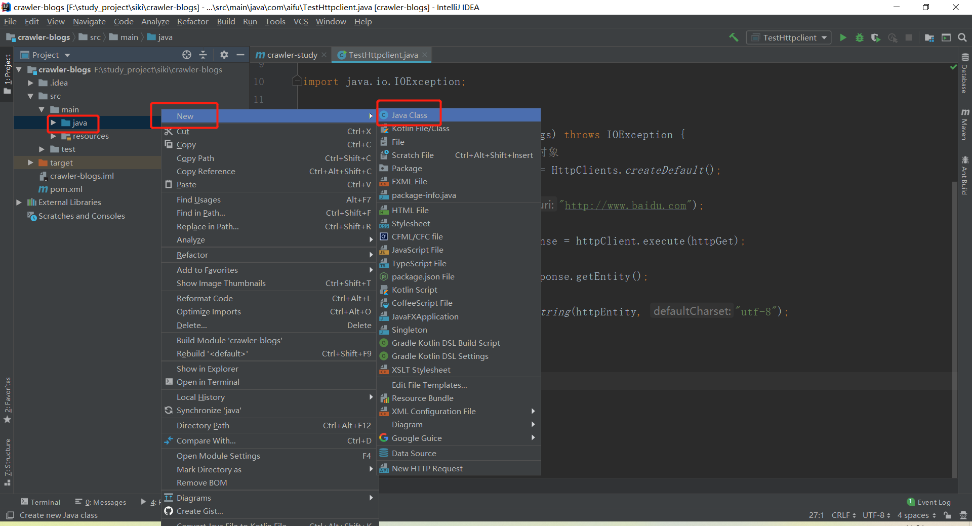 1.2.1 创建类文件 com.aifu.TestHttpClient