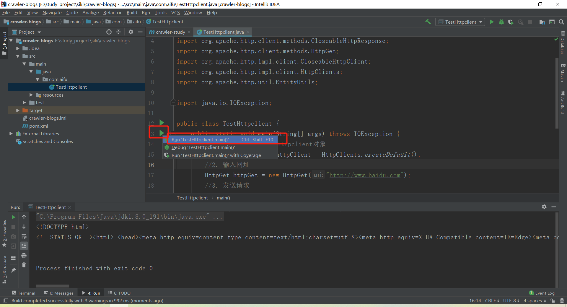 java爬虫之使用HttpClient模拟浏览器发送请求方法详解