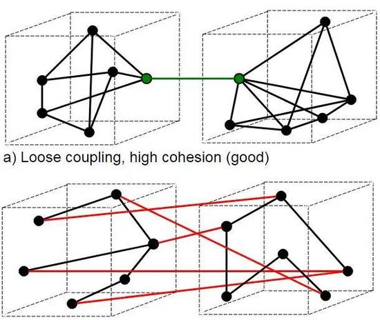 高内聚力伴随[松耦合](https://en.wikipedia.org/wiki/Loose_coupling)是设计良好的系统的特点。