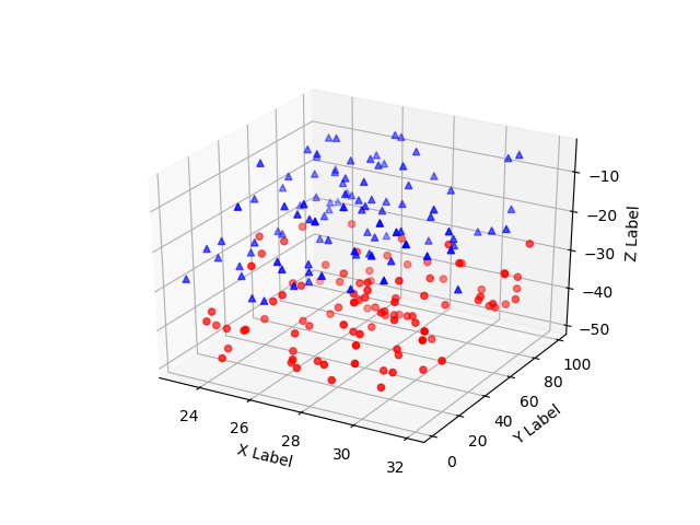 ax.scatter(xs, ys, zs, c=c, marker=m)