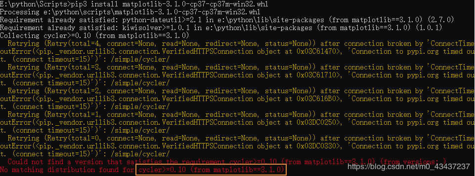 到此这篇关于关于python3.7安装matplotlib始终无法成功的问题的解决的文章就介绍到这了,更多相关python3.7安装matplotlib无法成功内容请搜索自学编程网以前的文章或继续浏览下面的相关文章希望大家以后多多支持自学编程网!