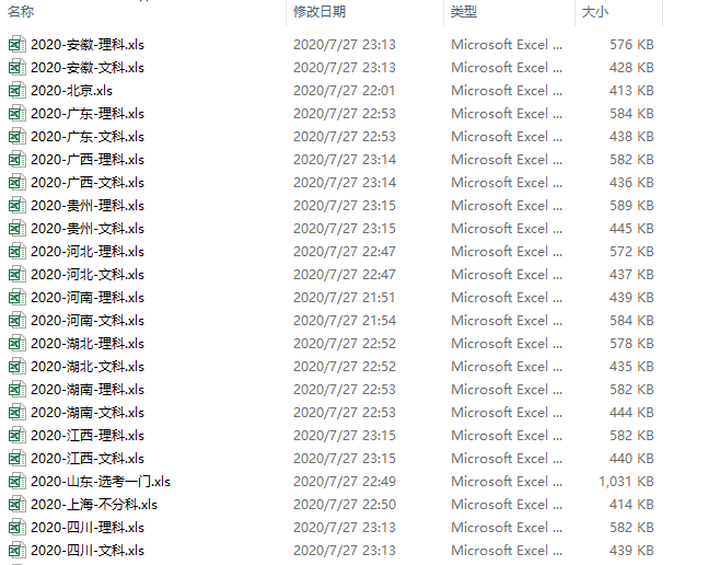 其中北京上海不分科,山东是选择一门考试进行考核, 所以 一共23个数据表,后续的话,我尽量将数据也一并上传了