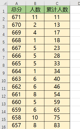 最终我们整理得到数据表, 每个Sheet 表示一个省市的文理科目,然后最上面一行数据分别对应 总分,人数, 累计人数,