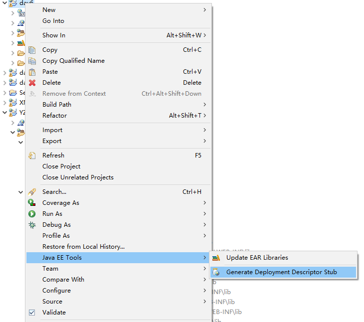 右击自己所创建的项目————》Java EE Tools————》点击Generate Deployment Descriptor Stub,完成这几步,即可,效果如下: