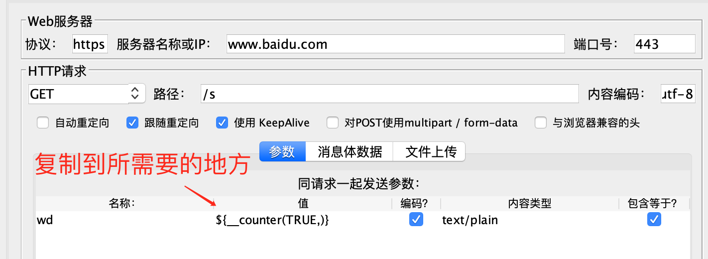 - 在每个线程组迭代上重置计数器:可选,仅勾选与每用户独立的跟踪计数器时可用;如果勾选,则每次线程组迭代,都会重置计数器的值,当线程组是在一个循环控制器内时比较有用。