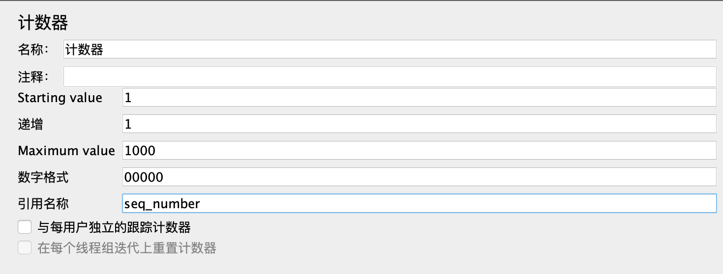 - 与每用户独立的跟踪计数器:全局的计数器,如果不勾选,即全局的,比如用户#1 获取值为1,用户#2获取值还是为1;如果勾选,即独立的,则每个用户有自己的值:比如用户#1 获取值为1,用户#2获取值为2。