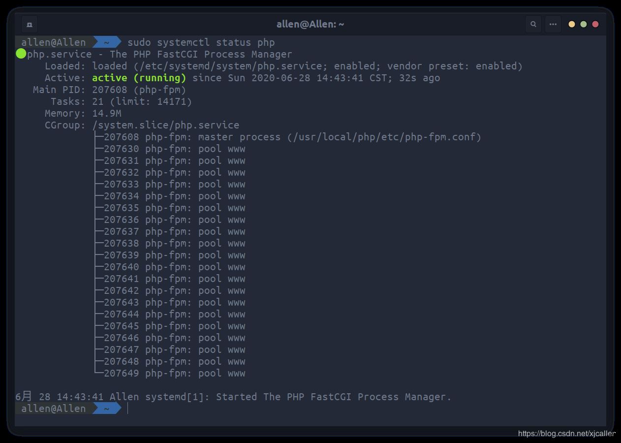 Thank you for using PHP. make -j 4 && sudo make install sudo cp php.ini-production /usr/local/php/lib/php.ini sudo cp /usr/local/php/etc/php-fpm.conf.default /usr/local/php/etc/php-fpm.conf sudo cp /usr/local/php/etc/php-fpm.d/www.conf.default /usr/local/php/etc/php-fpm.d/www.conf vim /usr/local/php/etc/php-fpm.d/www.conf listen.mode = 0666 pm.max_children = 128 pm.start_servers = 20 pm.min_spare_servers = 5 pm.max_spare_servers = 35 pm.max_requests = 10000 slowlog = log/$pool.log.slow rlimit_files = 1024 sudo vim /etc/profile.d/php.sh export PATH=$PATH:/usr/local/php/bin/ sudo chmod 0777 /etc/profile.d/php.sh && source /etc/profile.d/php.sh sudo cp sapi/fpm/php-fpm.service /etc/systemd/system/php.service