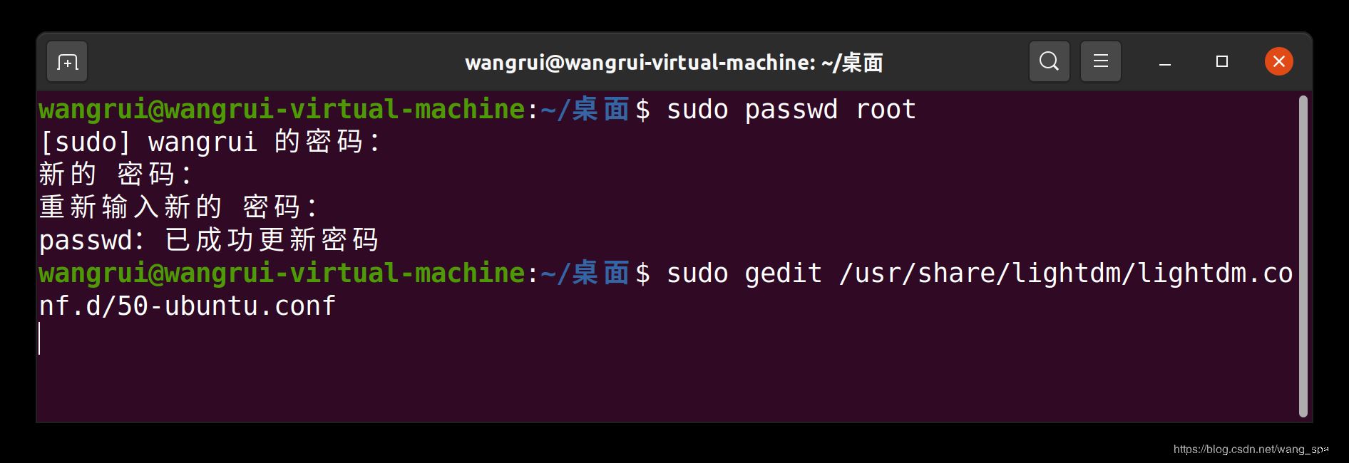 在终端输入命令:sudo gedit /usr/share/lightdm/lightdm.conf.d/50-ubuntu.conf
