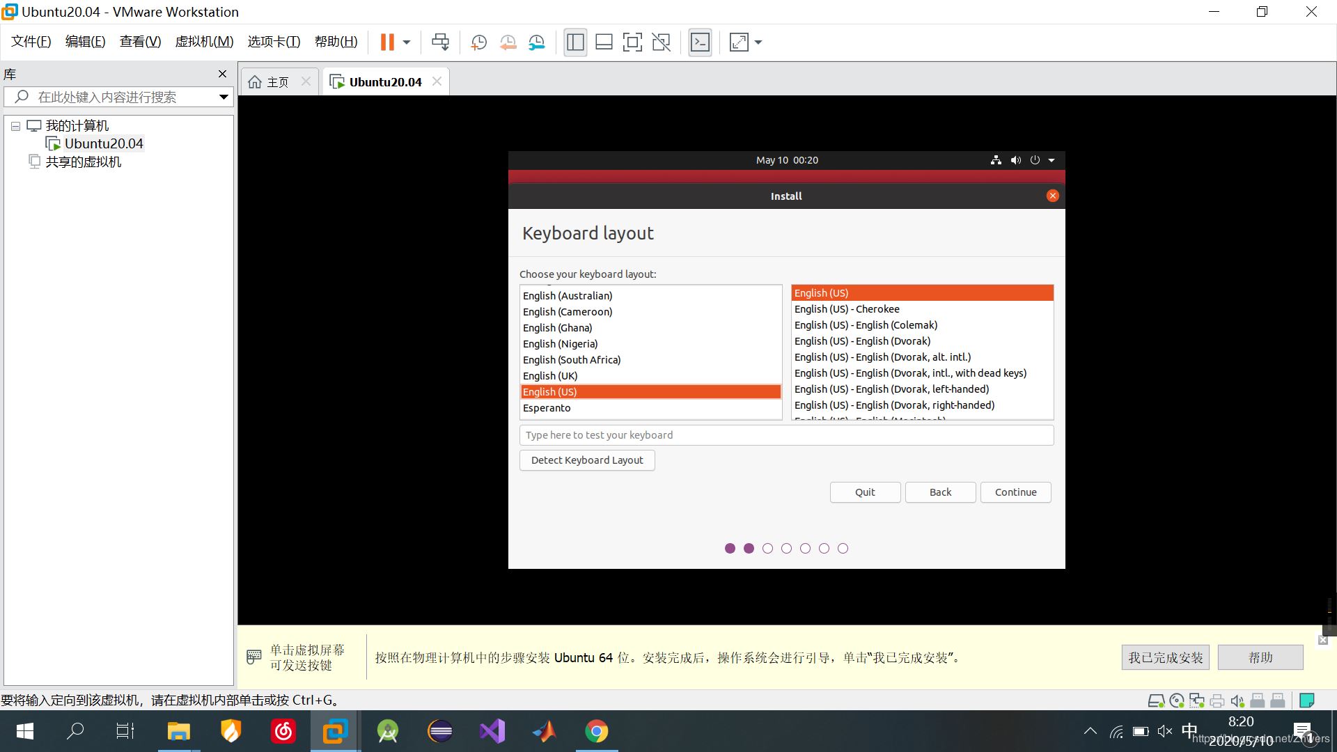 键盘布局使用“English(US)”,这个地方选错了可能会导致键盘输入跟你的笔记本键位不匹配