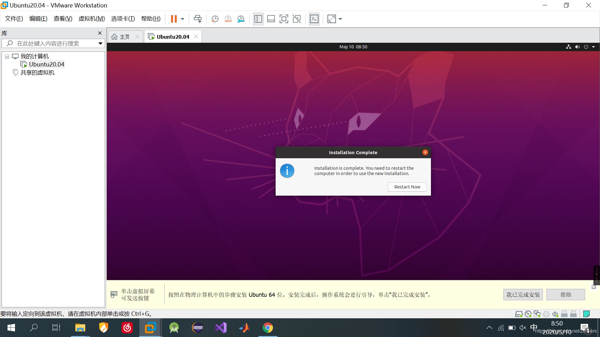 到这里Ubuntu20.04就安装结束了,更多相关VMware15.5安装Ubuntu20.04内容请搜索自学编程网以前的文章或继续浏览下面的相关文章希望大家以后多多支持自学编程网!