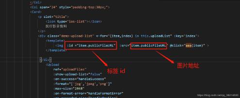 <img :id ="item.publicFileURL" :src="item.publicFileURL" @click="aaa(item)" >