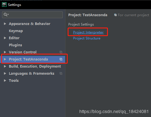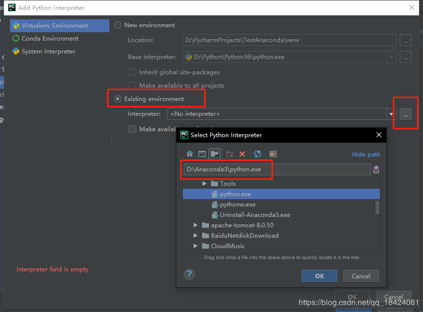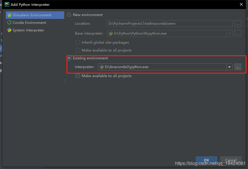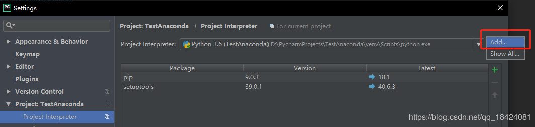 添加Anaconda中Python解释器(Anaconda安装目录下的python.exe)