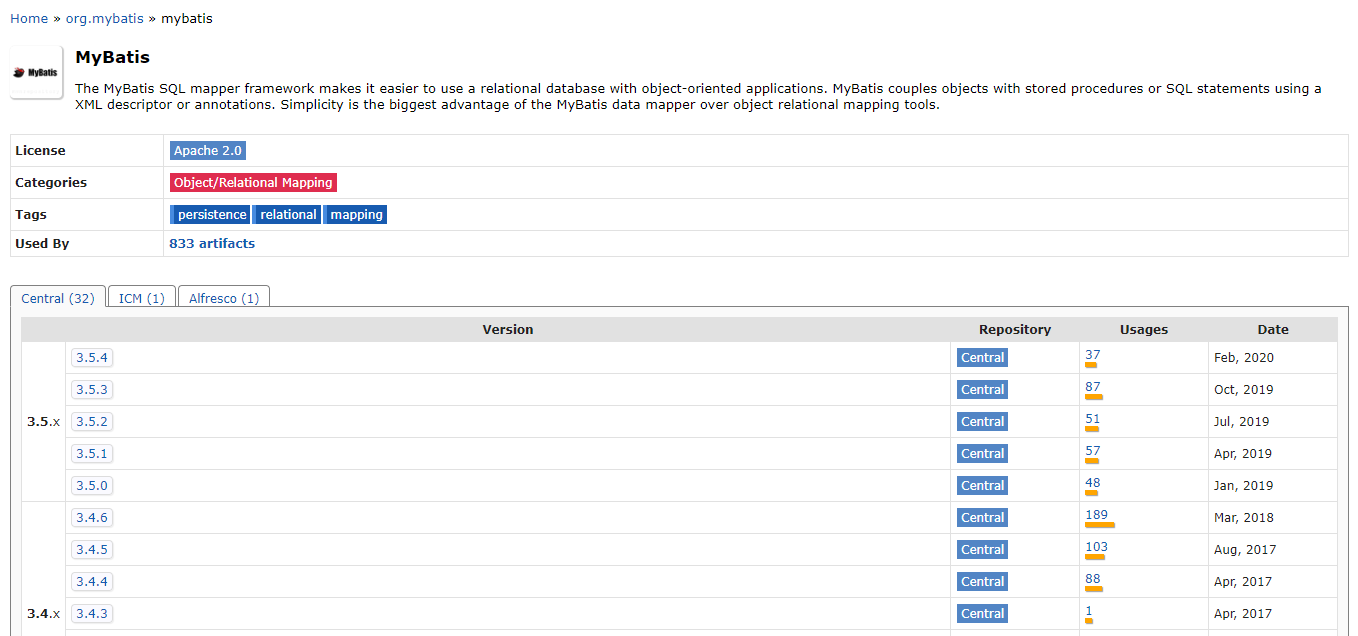 具体方法:搜索maven中央仓库,搜索你需要的依赖jar包,比如我搜索mybatis