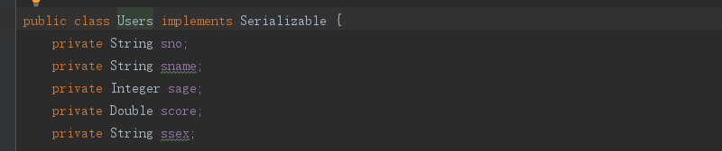 我们使用mabatis需要保证我们对数据库中的《列名》封装成的对象和我们创建的对象名一样,我的数据库有五个列名,所以我创建一个类来封装这些列名