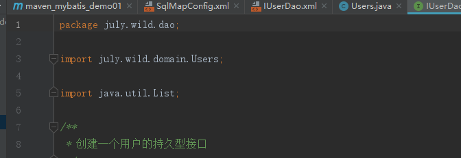 <mapper namespace="july.wild.dao.IUserDao">