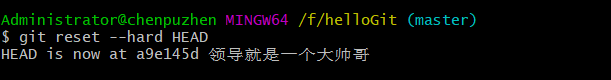 同样的,我们先add,不进行commit操作,add后,我们执行 git reset --hard HEAD,如图: