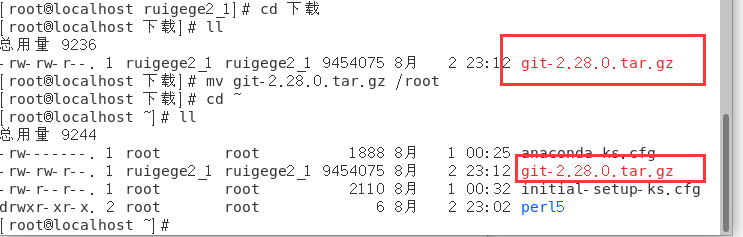 (2)自行下载git安装包,进行安装首先下载tar包,然后移动到root目录中