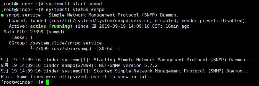 可以看到snmp的绿色图标亮起,说明我们的操作没有问题,server与client也能够正常的交互,如果图标一直没有亮起,在网络没有问题的基础下,可能是团体名的配置有问题。