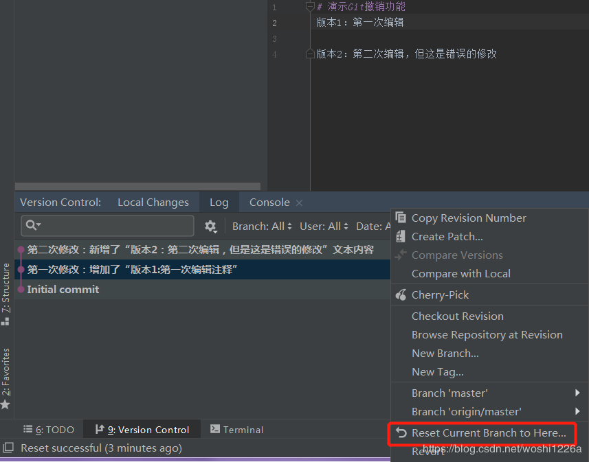 已经提交到仓库(本地和远程仓库)的内容如何利用IDEA回退到原来指定版本?