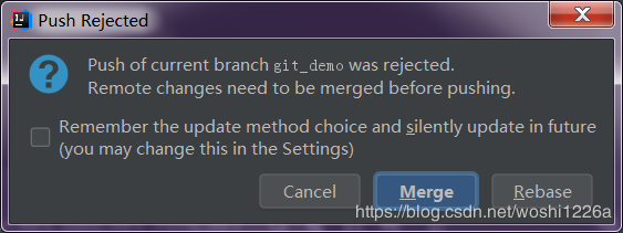 后,提示Push拒绝。打开Terminal,在本项目目录下,输入git push -f 强制同步远程仓库。