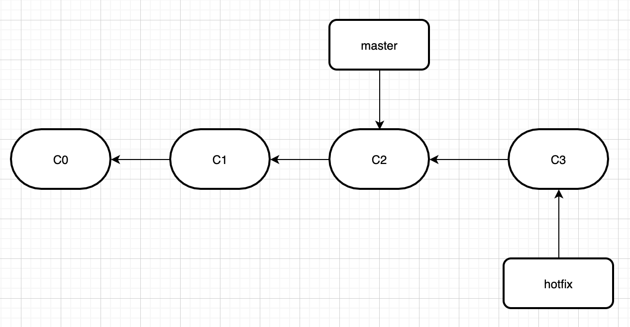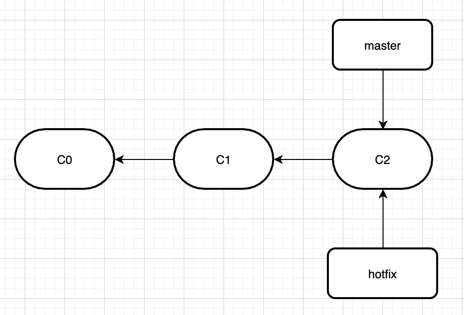 举个栗子,假如初始存在master和hotfix分支是这样的。