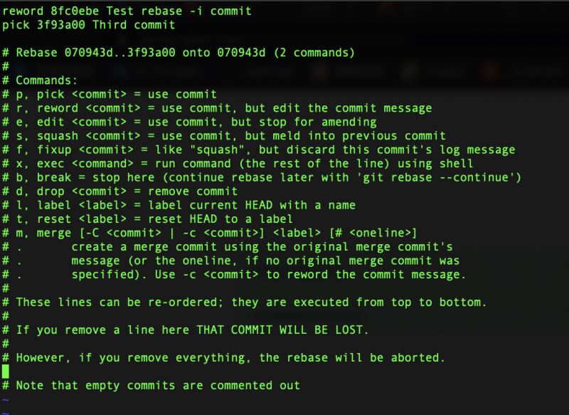 # 将指定分支合并到当前分支 git rebase branch-name # 执行commit id 将rebase 停留在指定commit 处 git rebase -i commit-id # 执行commit id 将rebase 停留在 项目首次commit处 git rebase -i --root