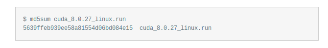 输入命令:$ md5sum cuda_9.0.176_linux.run