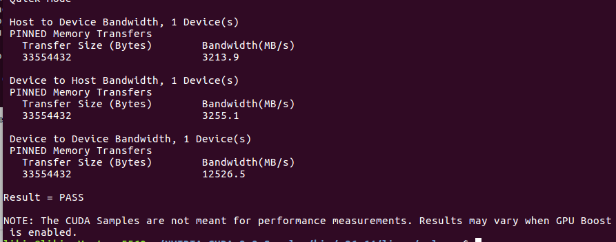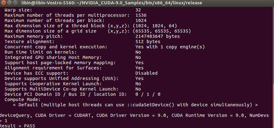 接着在上一个终端中输入 :$ cd /home/lxxx/NVIDIA_CUDA-9.0_Samples/bin/x86_64/linux/release 其中xxx是你自己的用户名