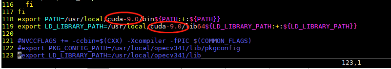 将相应的cuda-9.0换成cuda-8.0,如下图所示(保存之后退出)