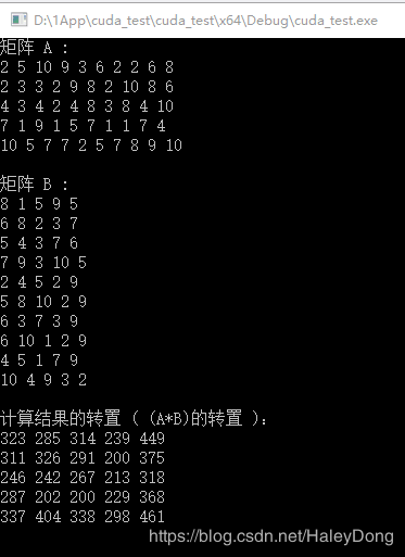 cout << "计算结果的转置 ( (A*B)的转置 ):" << endl;