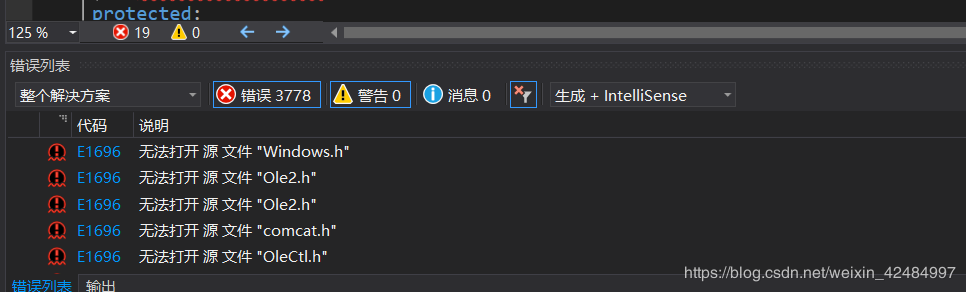 错误列表中大量 “无法打开源文件”错误资源列表中许多文件无法包含前两个问题导致的代码中问题(格式、类型声明、定义等)解决方法