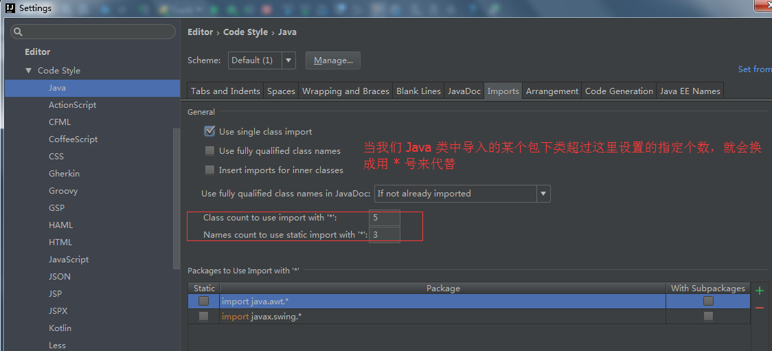 还有就是优化引入,假设你引入了一个包下的很多个文件,他就会给你优化成xxx包名.*。也就是下面这个图的配置啦。