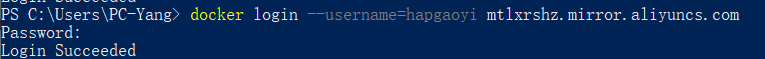 docker login --username=hapgaoyimtlxrshz.mirror.aliyuncs.com。如图: