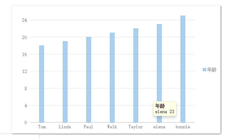 然后经过下面几句代码,就可以使用在页面中插入一个柱状图