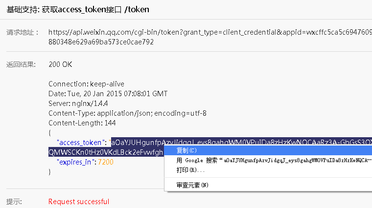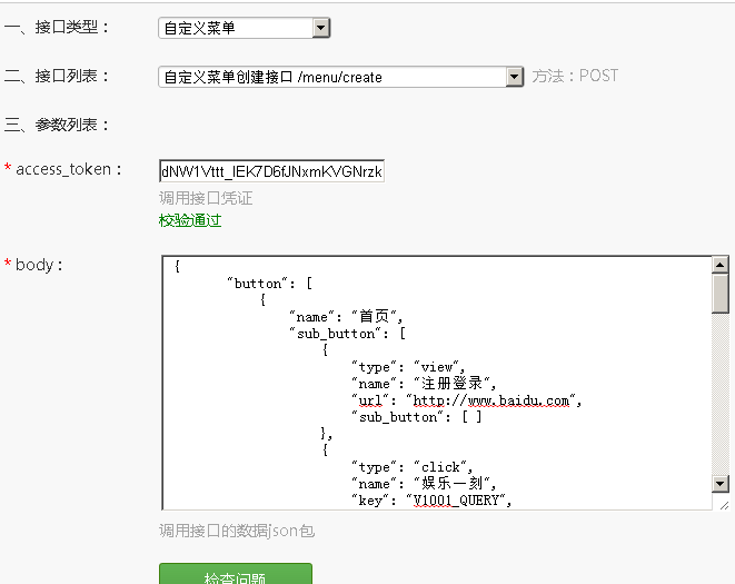 配置菜单前,首先要拿到access_token,它的有效期为2小时。如图点击获取access_token