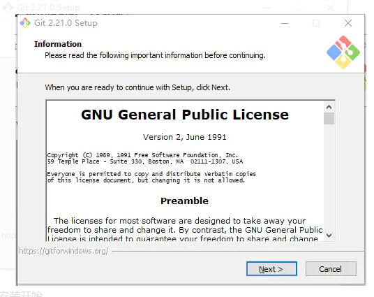 第一步:双击下载后的Git-2.21.0-64-bit.exe,开始安装