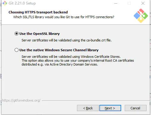 第八步:选择HTTPS传输后端,使用OpenSSL 库,点击[next]