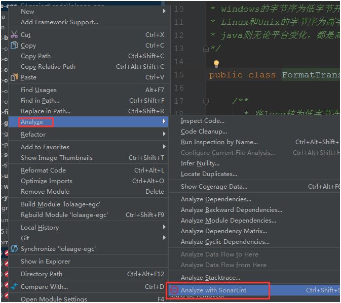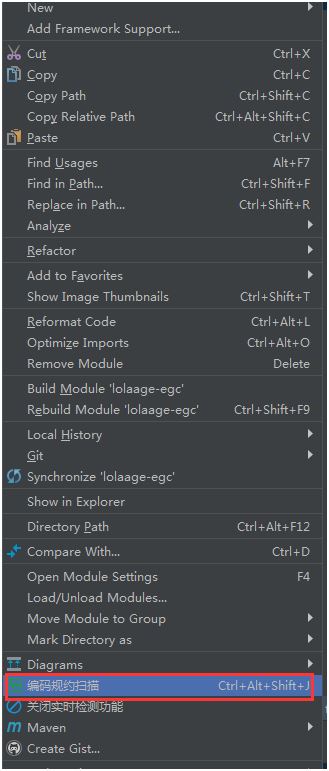 2.3 选中项目右键,下拉中找到 “代码分析”-“编码规约扫描”