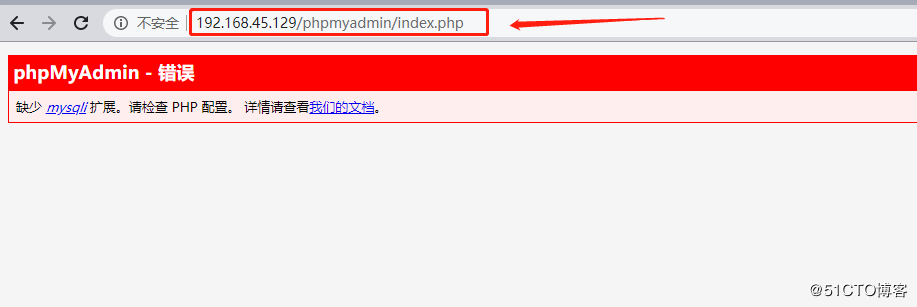 OK,看到报错,就说明至此,做的没有问题,正常来说,就是会提示此错误,因为在正常编译安装PHP时,都需要增加“--with-mysql...”等一些相关选项,看到这个页面,很显然,我们运行的这个PHP容器并没有增加关于数据库的选项,接下来,就解决这些问题。