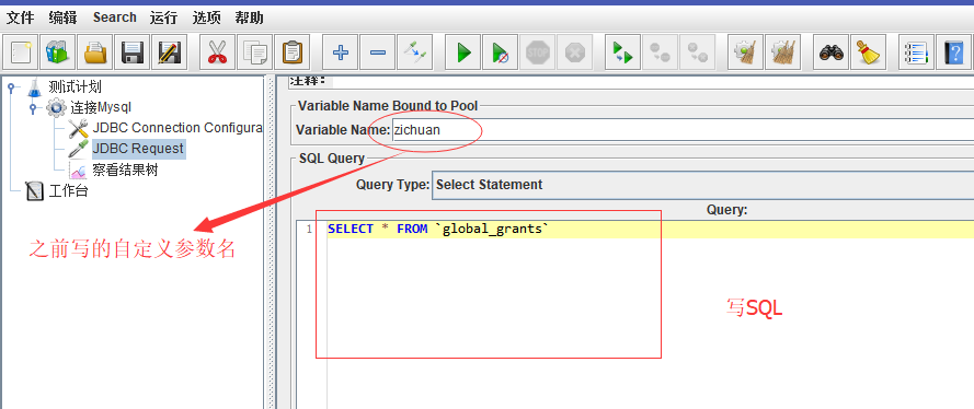 Variable Name:自定义参数,在JDBC Request中会用到;