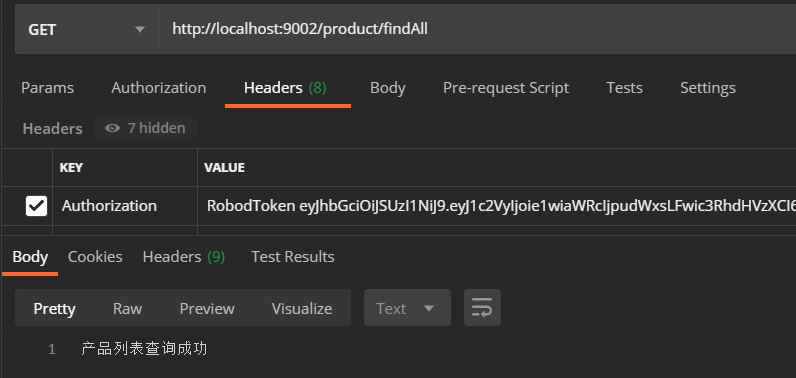 登录成功之后,响应头中有服务器返回的Token信息,把它复制下来,然后添加到我们请求的请求头中。